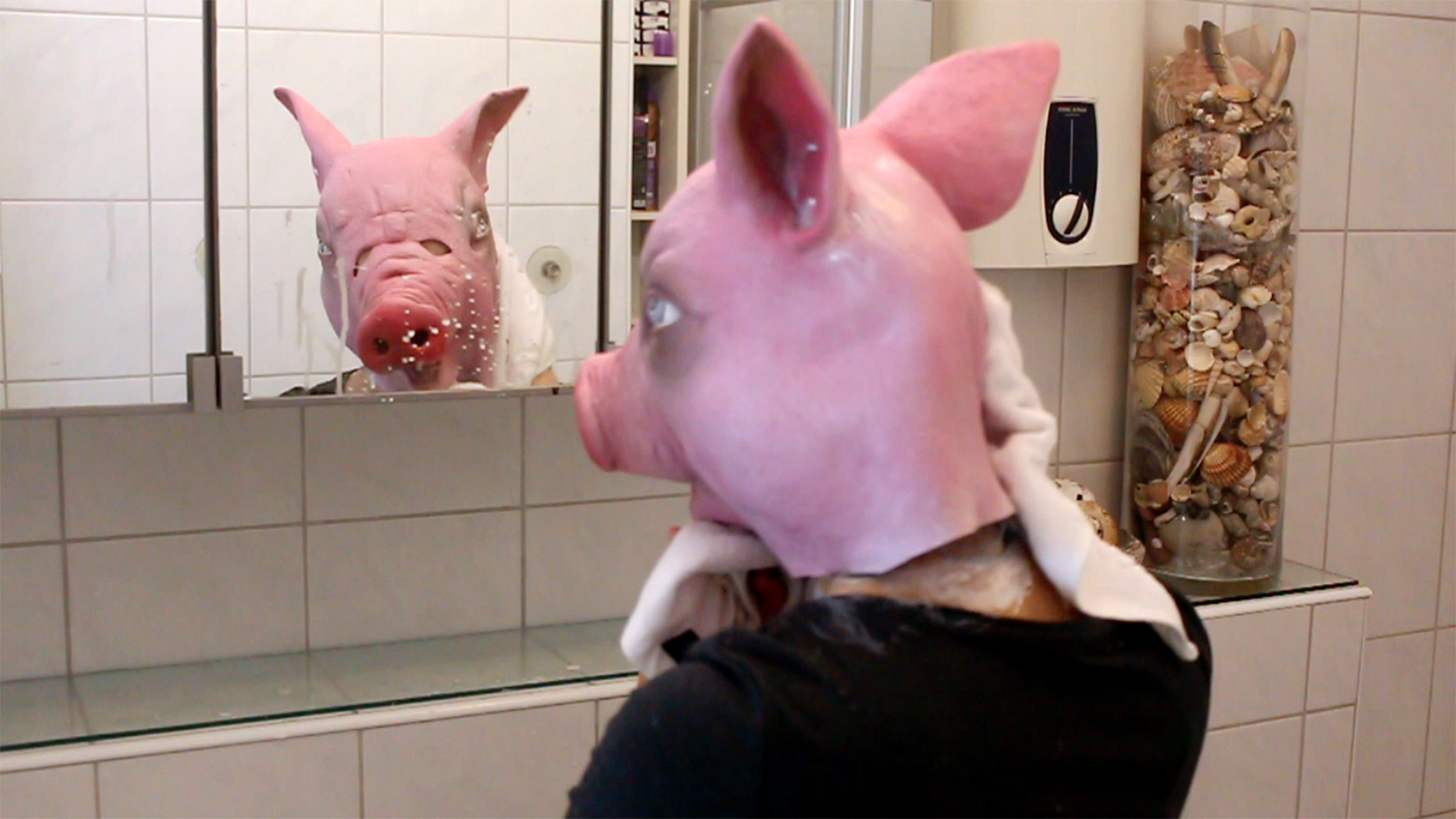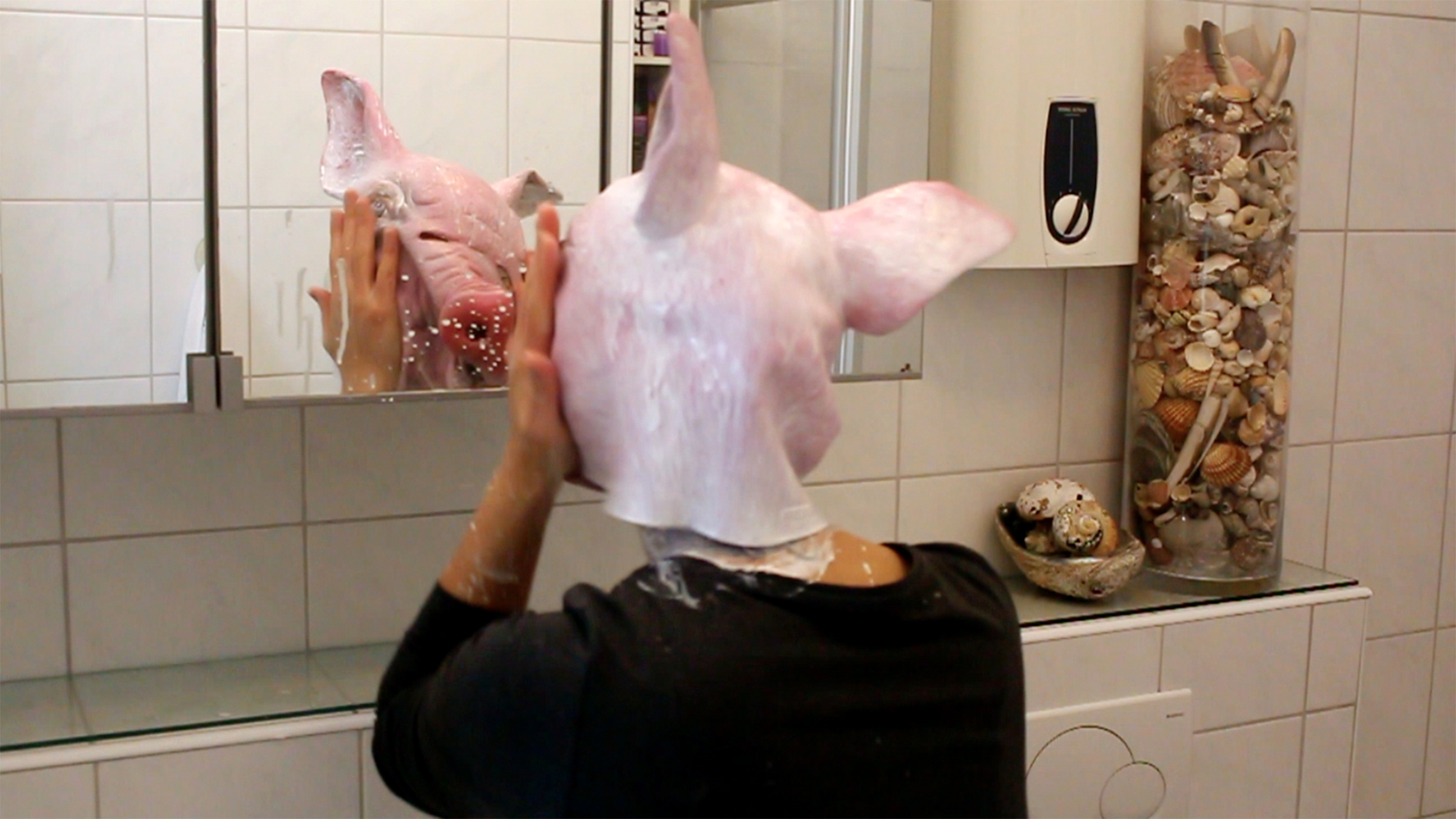 Wenn man an das Wort ‘Abwaschen’ denkt, stellt man sich einen Prozess vor, bei dem etwas Lügenhaftes oder Verhüllendes beseitigt und etwas Reines und Wahres wiedergefunden wird. Obgleich der Performer die Farbe von 'seinem Gesicht' abwäscht, kann man immer noch die Maske als sein originales Gesicht sehen. Es ist nicht mehr wichtig, ob ein wahres Gesicht gefunden wird.